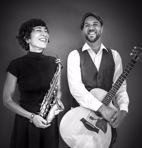 2016 also saw the formation of her duo with Curtis Thorpe, a project fueled by a love of improvisation, of musical arrangement and multi-instrumentalism; Curtis plays guitar, percussion and harmonica simultaneously while Ariana sings and takes liberties with her soprano saxophone and sometimes accordion or violin. The duo delights in making new arrangements of French, international, and jazz songs.